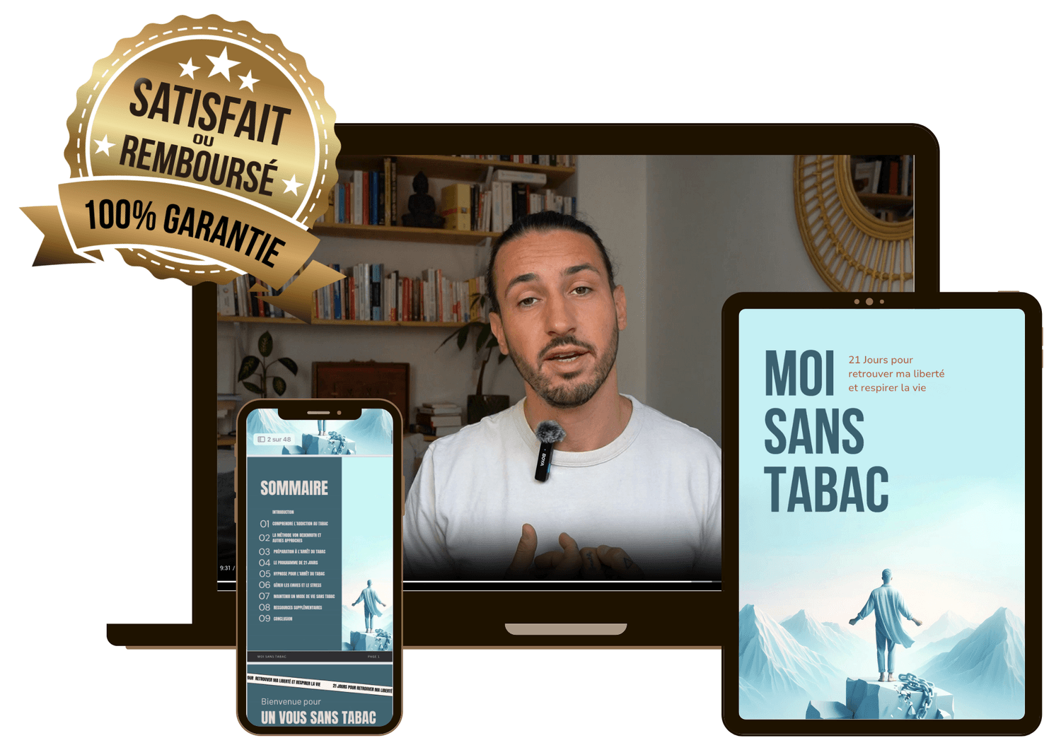 Libérez-vous enfin du tabac en 21 jours et retrouvez votre liberté, sans stress et sans prise de poids grâce à la méthode "Moi sans Tabac"!
